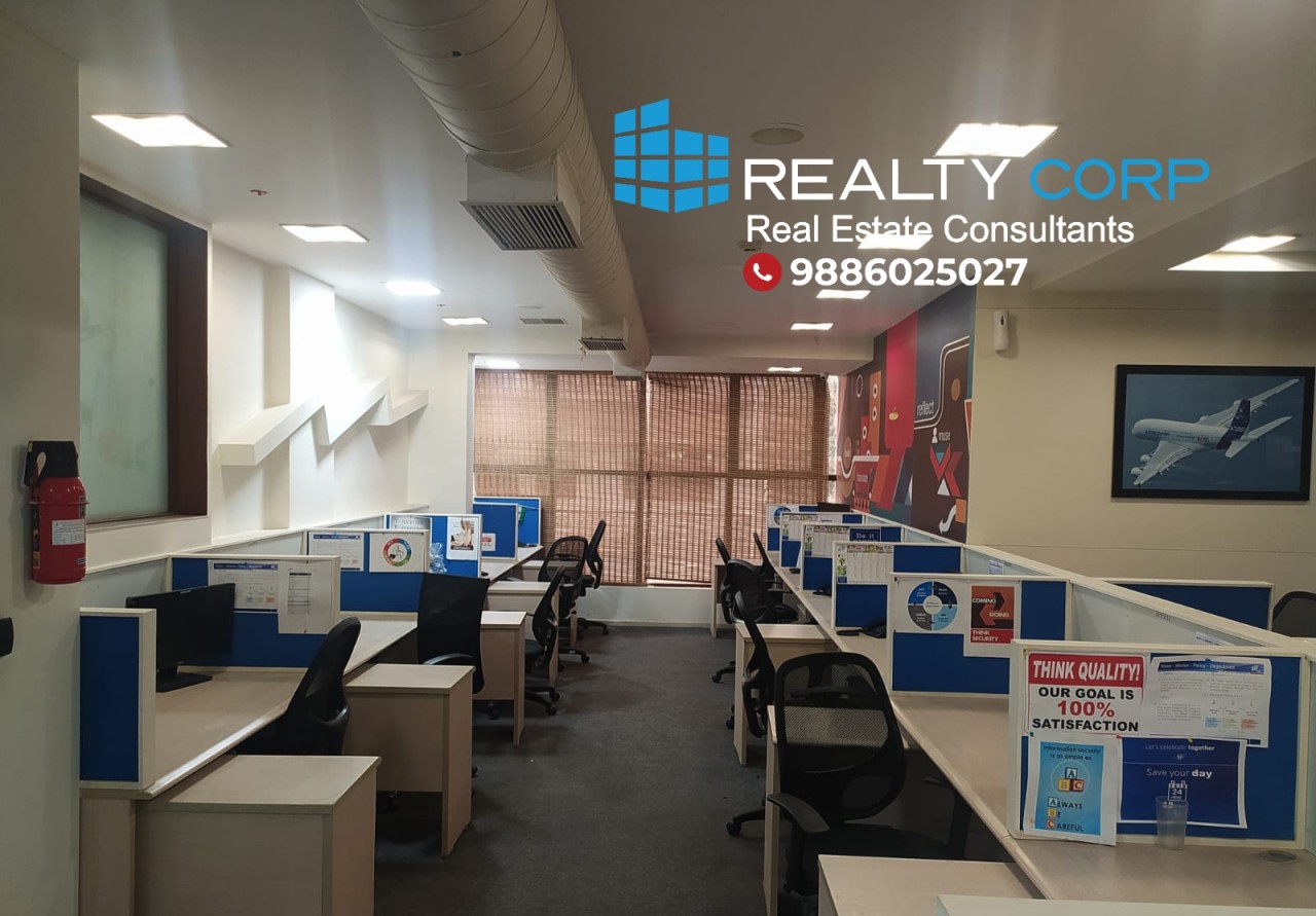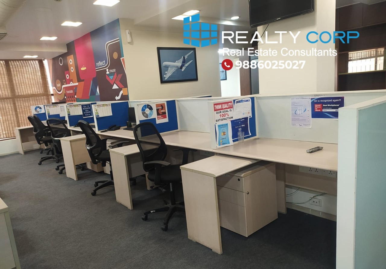 Fully Furnished (Plug & Play) Office Space, Built Up Area 5400 Sq.Ft, 60 Workstations, 5 Cabins, 14 Seater Conference Room, 800 Sq.Ft Additional Cafeteria Space, 3 Car Park & 20 Two Wheeler Parking.